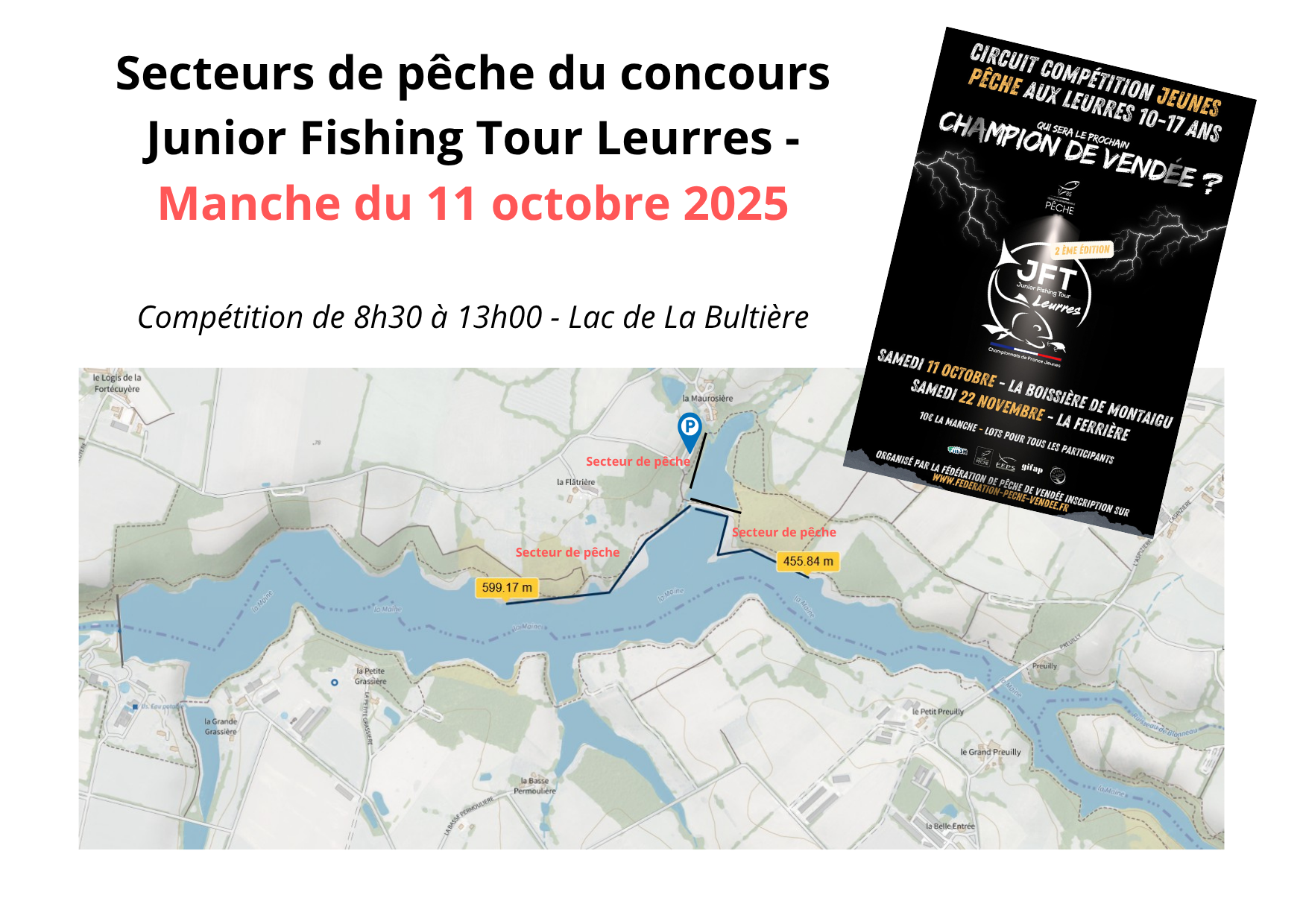 - Merci aux pêcheurs habitués du site de laisser la place aux compétiteurs, sur le linéaire concerné par l’événement de 8h30 à 13h00