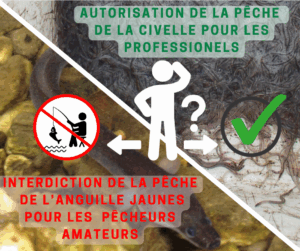 En revanche, ce même décret autorise la pêche de l’anguille jaune pour les professionnels… (Cherchez l’erreur).