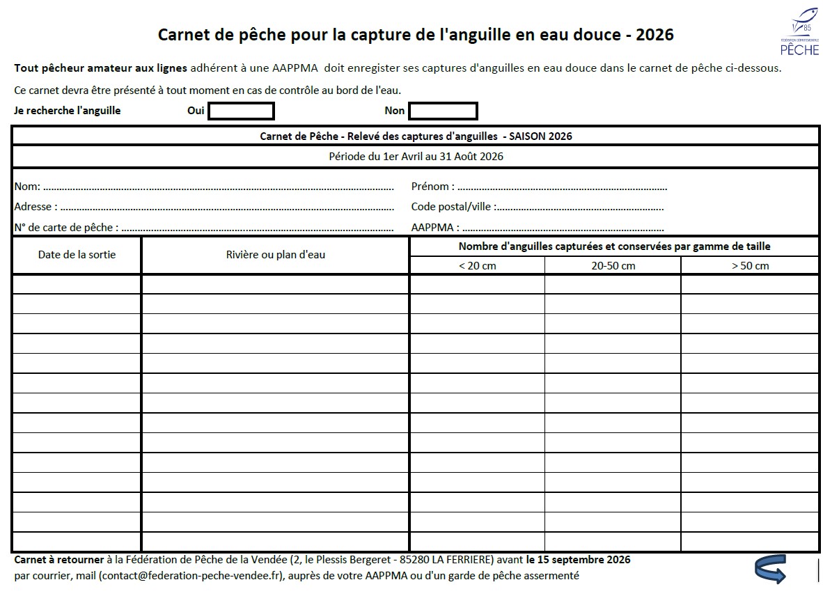 N’oubliez pas de vous munir de votre carnet de capture de l’anguille